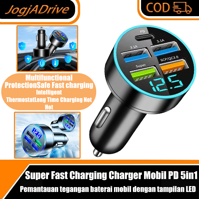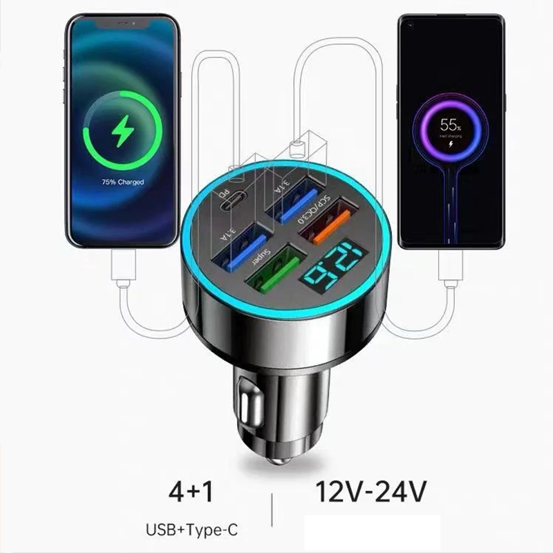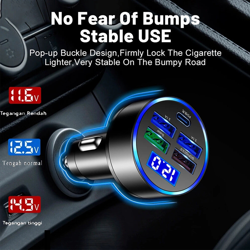Super Fast Charging Charger Mobil 5 Port Adaptor 66W PD QC3.1 Tipe-c 5USB Car Charger Untuk IP and Android