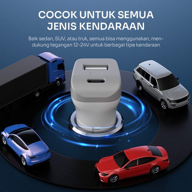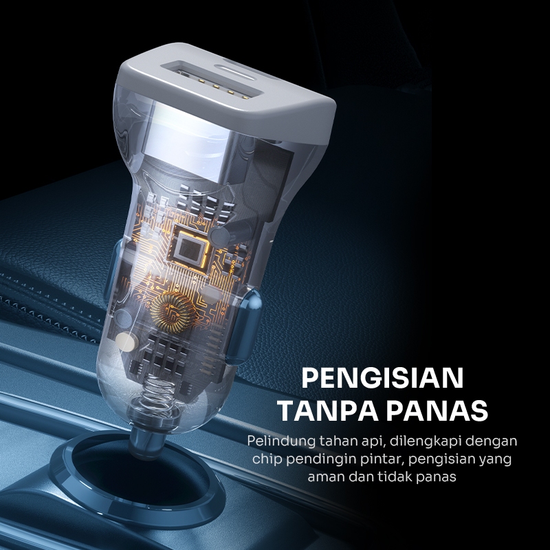 ROBOT RT-C09 Car Charger Colokan Mobil - 2 Port USB & Type C - Garansi Resmi 1 Tahun