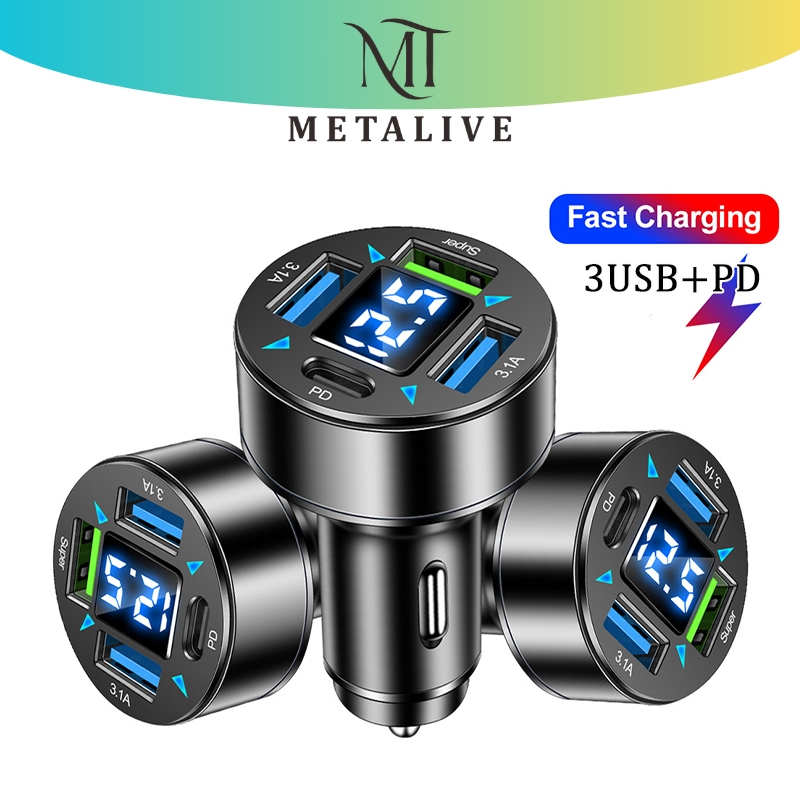 METALIVE Car Charger Colokan Charger Mobil 3USB+PD Adaptor Charger Mobil Fast Charging Quick Charger