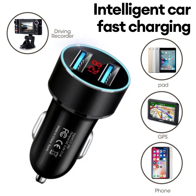 Car Charger Fast Charging / Multifungsi Colokan Mobil 2 Ports 3.1A 12V-24V