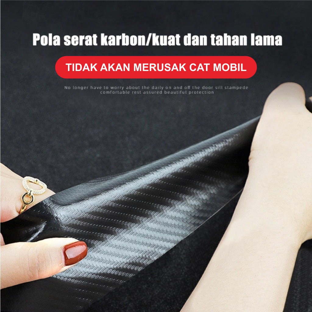 5Pcs Sticker Pelindung Sill Plate / Stiker Pelindung Pijakan Lantai Pintu Mobil / Universal Carbon Fiber Car Door Step Sill Plate Mobil Sticker