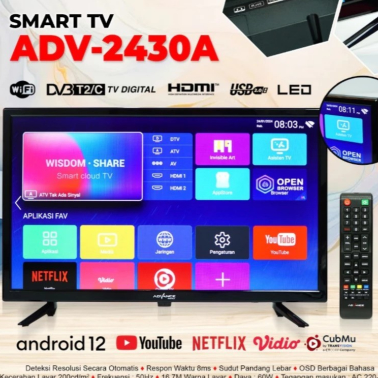 ADVANCE Smart TV Android LED 24 & 32 Inch HD Support Siaran Digital DVB-T2/C ADV-2430A 3203A