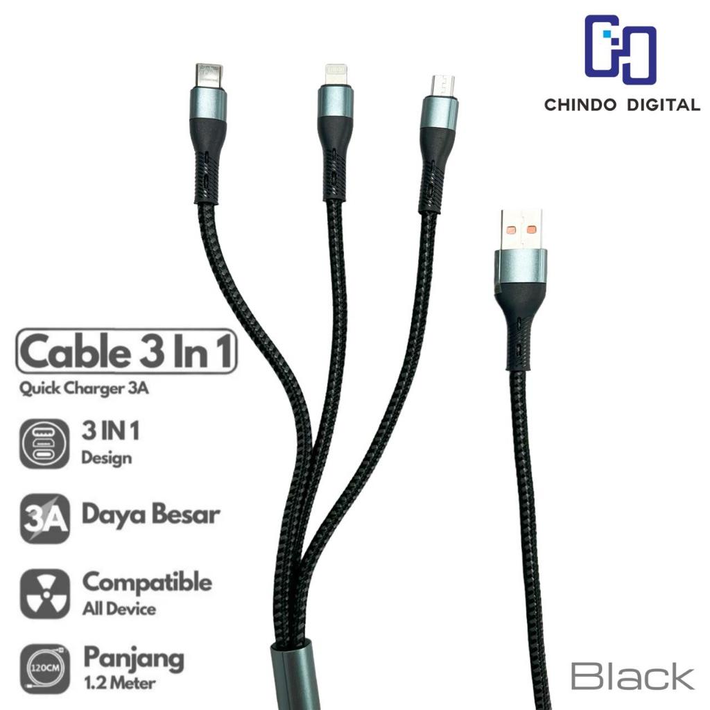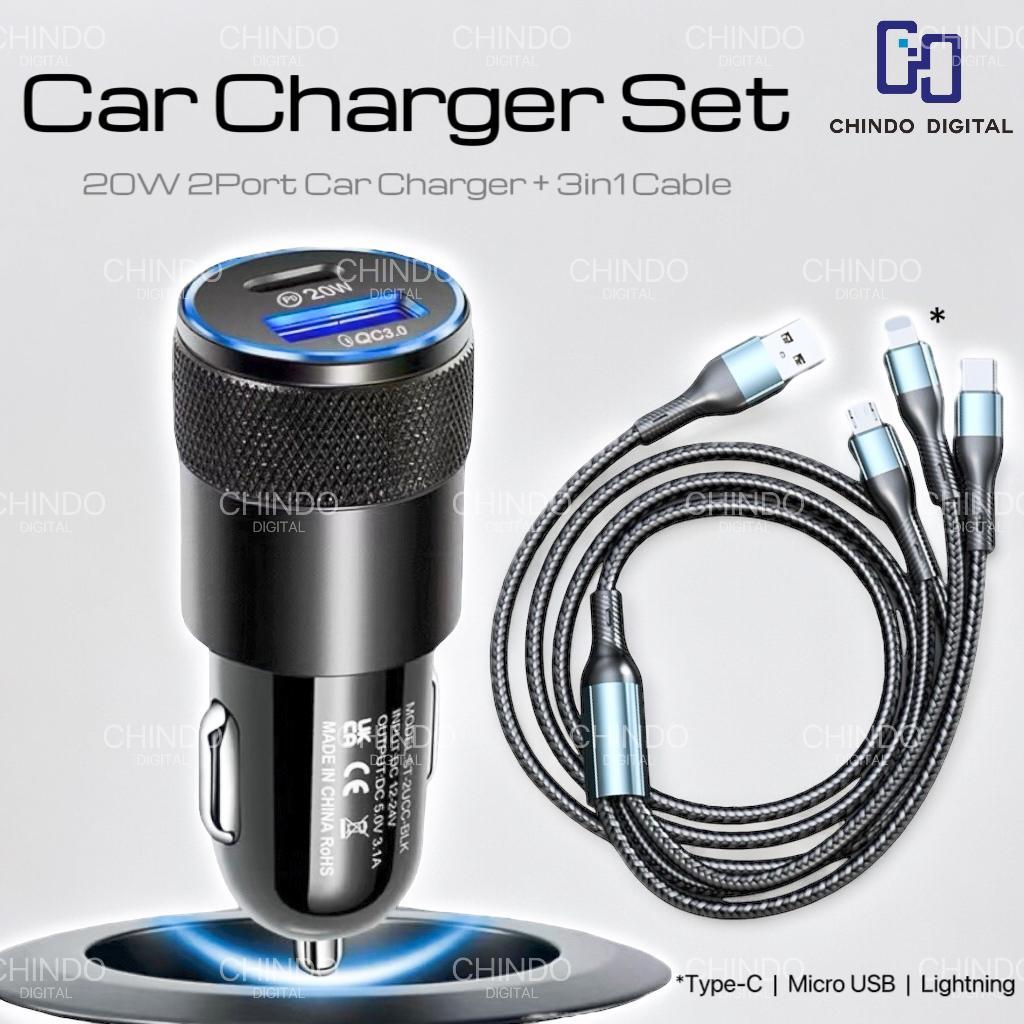 [CDOS] Fullset Car Charger 2 Ports QC3.0 with 3in1 Cable Fast Charging Colokan Charger Mobil