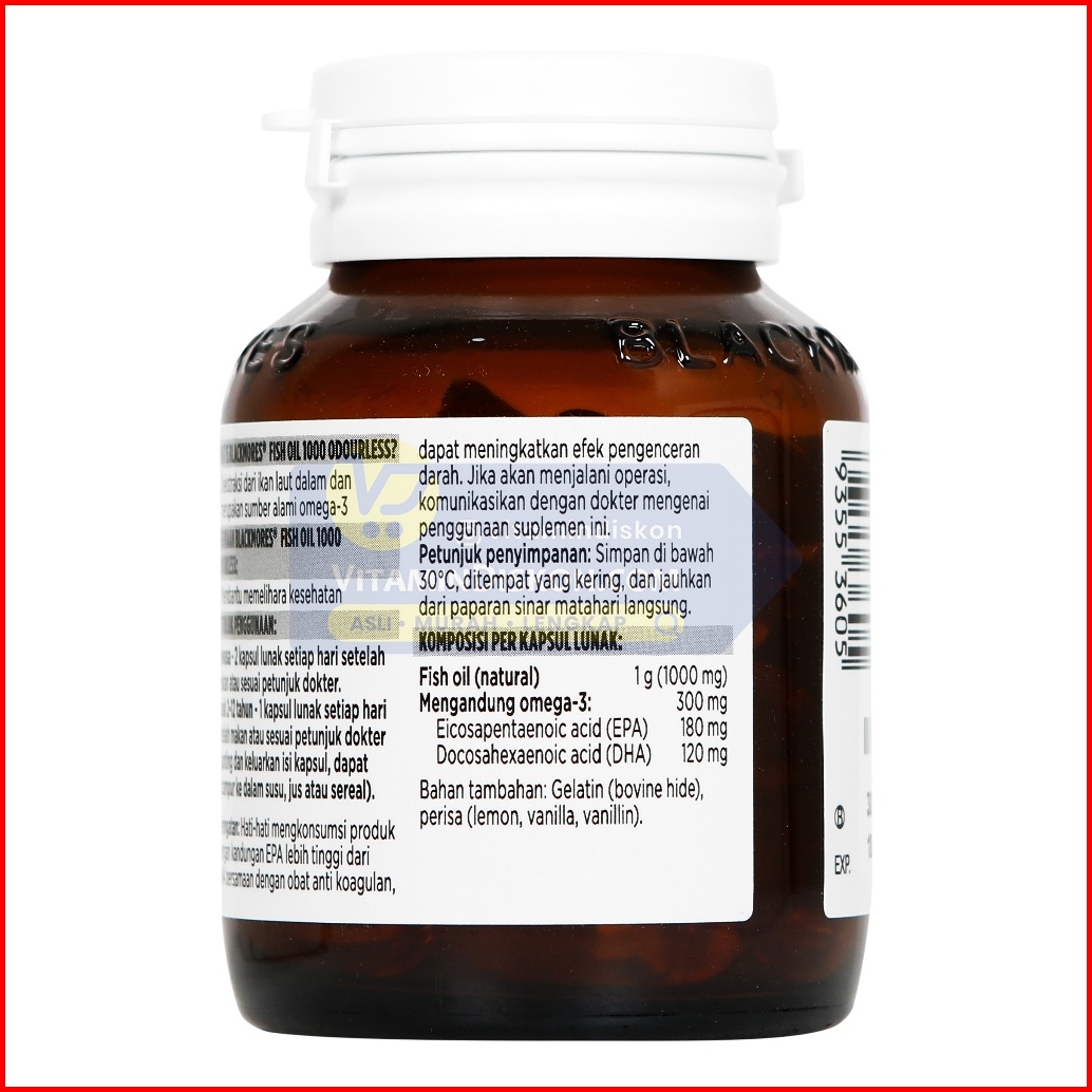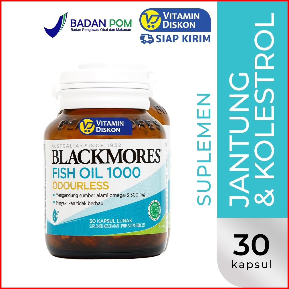 Blackmores Odourless Fish Oil 1000 Bpom Kalbe 30 Caps Suplemen Omega 3 Memelihara Kesehatan Jantung