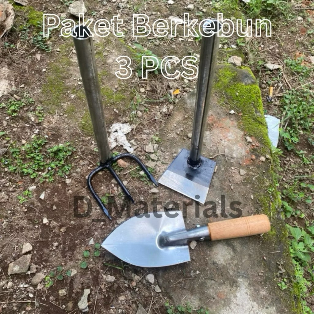 Satu Set Peralatan Berkebun 3 pcs Garuk Cangkul Mini Gagang Pipa Dan Sekop Taman Lancip Siap Pakai
