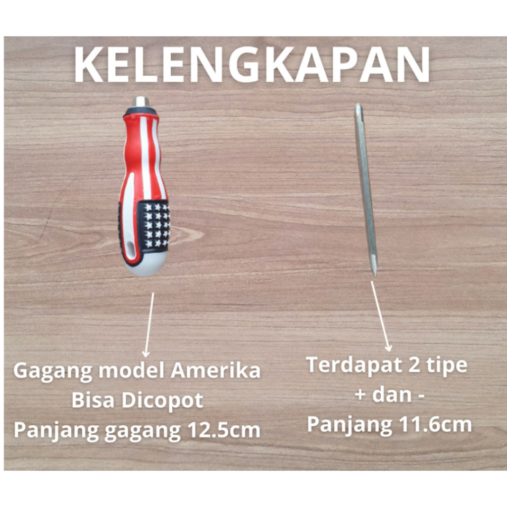 Obeng Amerika Bolak Balik 20cm / Obeng US Plus dan Minus 8 inch / Obeng Gagang US 2 in 1 panjang 20cm / Obeng Gagang Karet Amerika 2 Way / Screwdriver US Amerika 2 Way / Obeng Plus Minus Gagang Karet