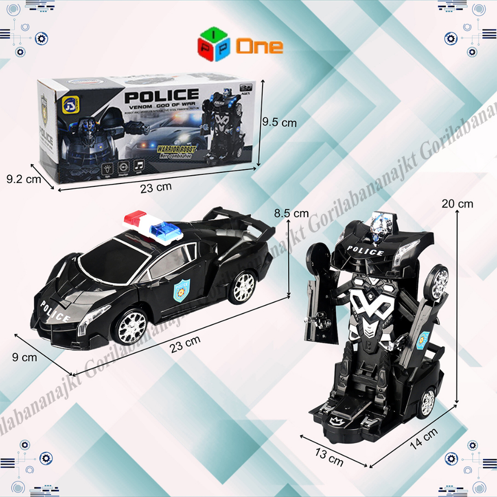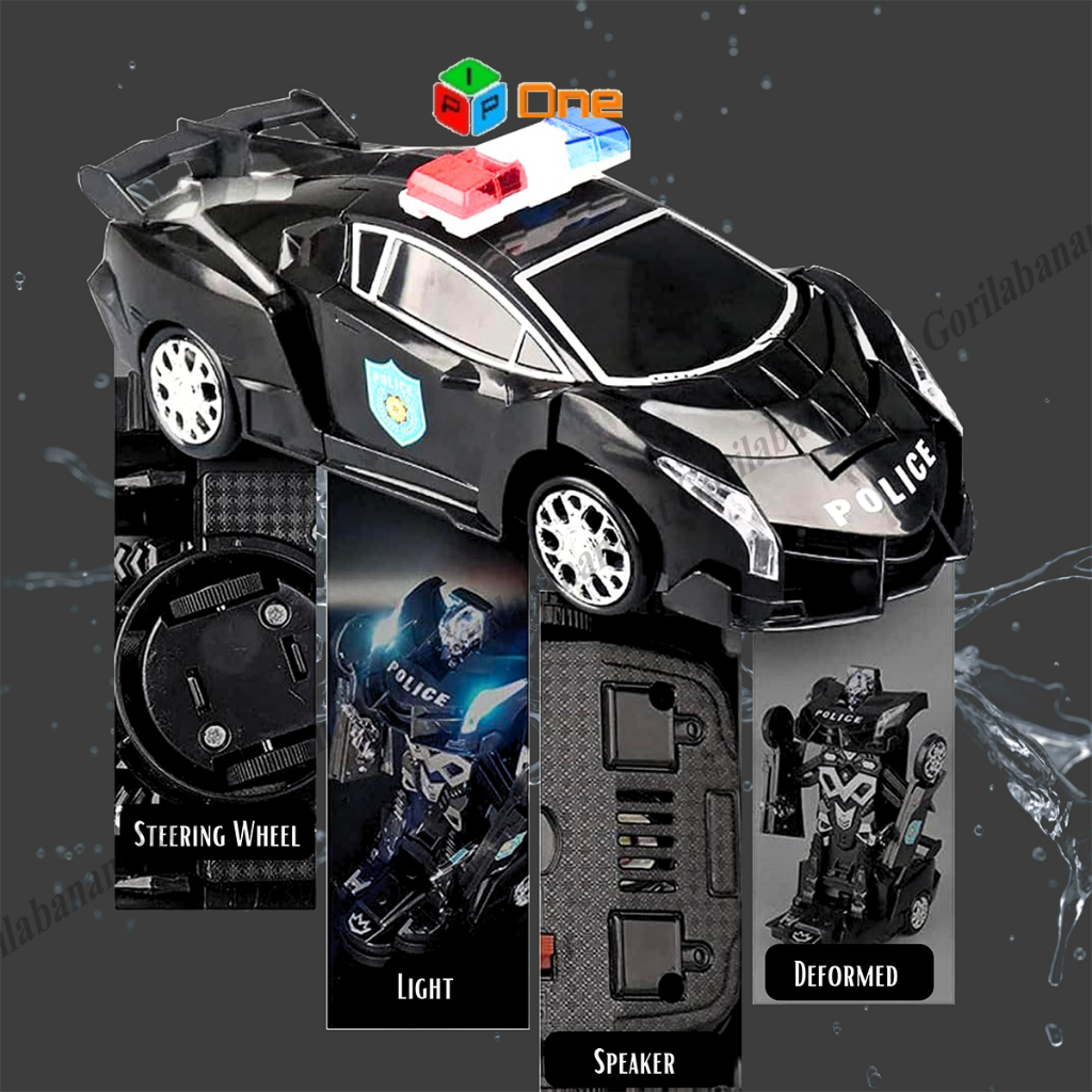Mainan mobil robot Polisi Hitam 2 in 1 deformation