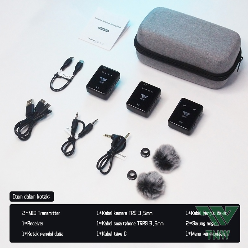 Tnw-N11 Microphone Wireless Dual Mikrofon Clip On Mic Hp Dan Charging Case Mikrofon Untuk Live Vlog Youtube Tiktok