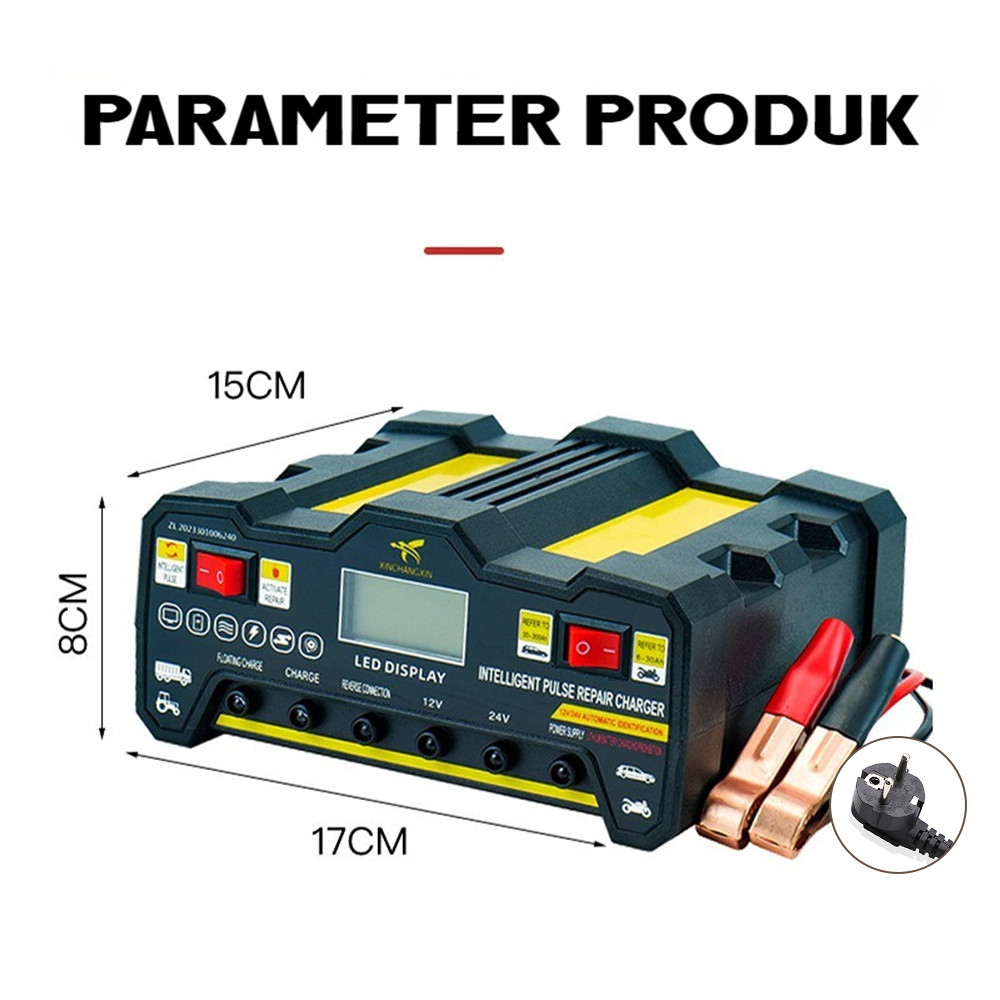 12V 24V Charger Otomatis Aki Mobil Motor Kapal Truk Automatic Fast Smart Charger 220W
