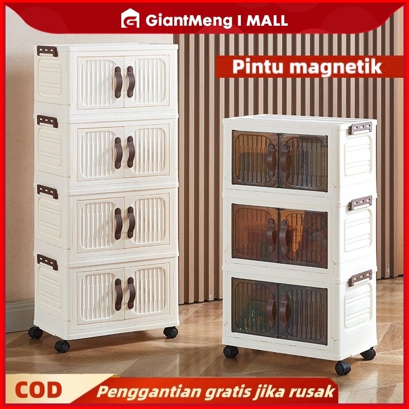 Giantmeng - Lemari Lipat Plastik 3-6 Susun Portable Roda Rak Serbaguna Muat Banyak