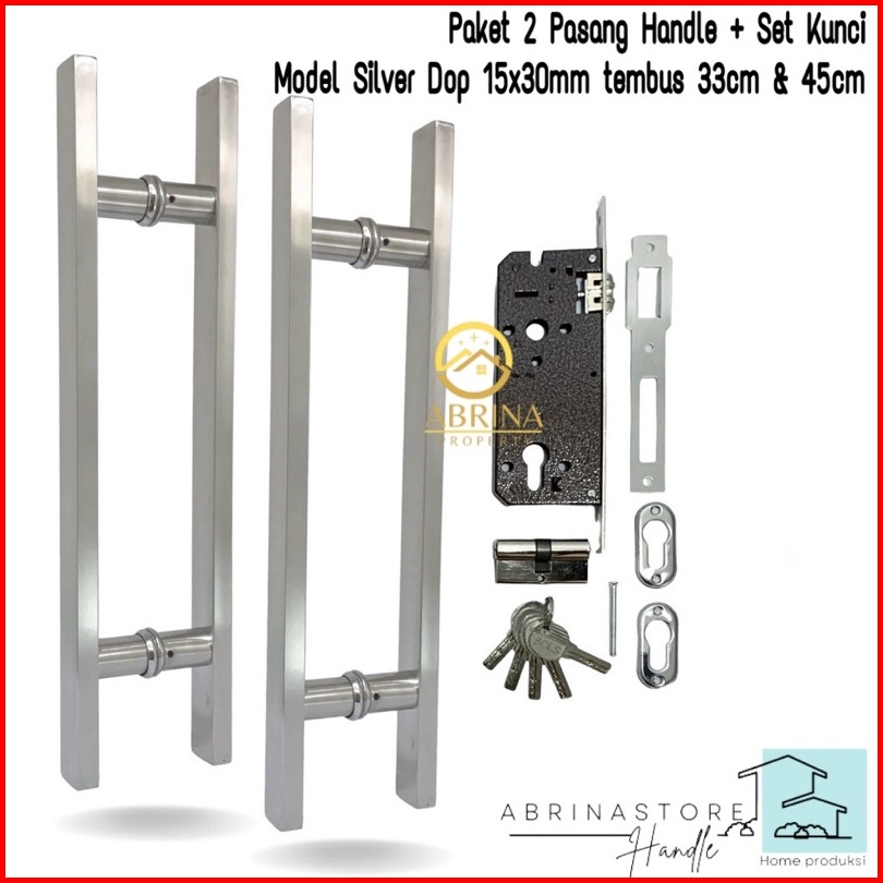 Paket Handle Pintu Rumah Kaki Tembus Set Kunci Panjang 33cm 45cm Stainless Tarikan Gagang Pintu Rumah Minimalis Handel H