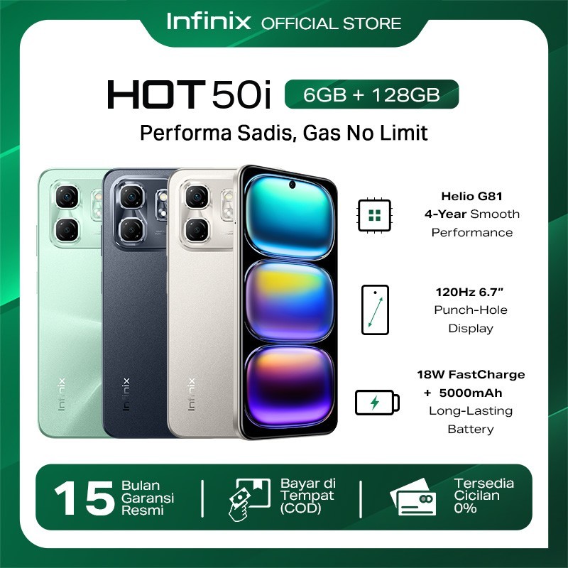 Infinix Hot 50i 6/128GB - Up to 12GB Extended RAM - Helio G81 - 6.7 inch 120Hz Punch Hole Display - 48MP AI Lens - 5000 mAh -