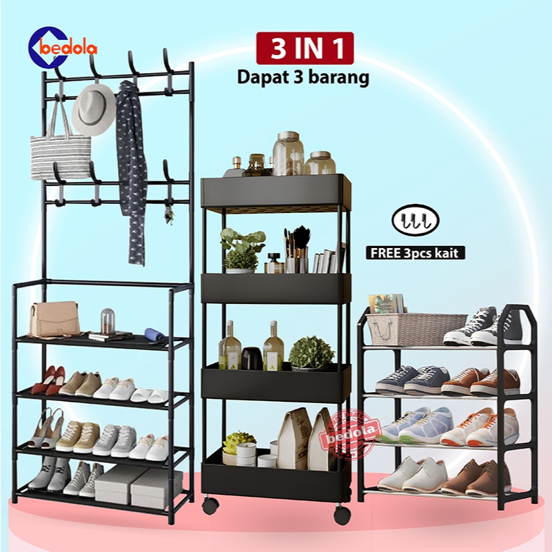 Combo 3 in 1 () rak sepatu hanger mutifunsi +rak serbaguna 4 susun + rak sepatu 4 tingkat