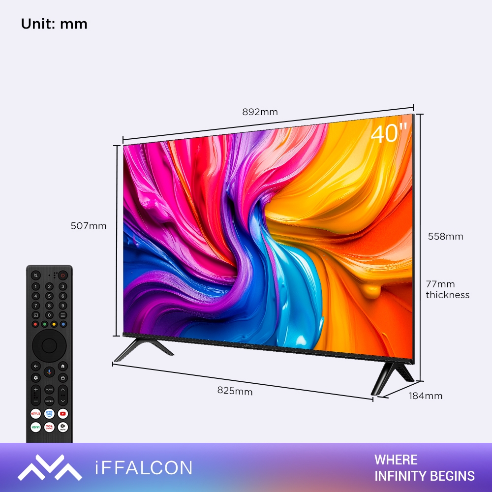 iFFALCON by TCL 40 inch S55 Series Google TV (Android 14) Smart Digital - FHD - HDR 10 - Dolby Audio - Google Play/Netflix/YouTube/Disney+ Hotstar/Prime Video - WiFi/Bluetooth