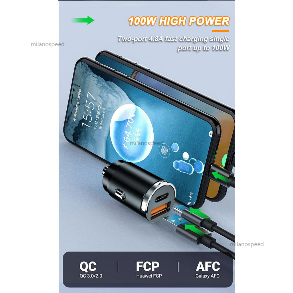QC3.0 100W PD USB Pengisi Daya Mobil Super Cepat Adaptor Pengisian Daya Cepat Tipe C 100W USB C Pengisi Daya Mini Ponsel