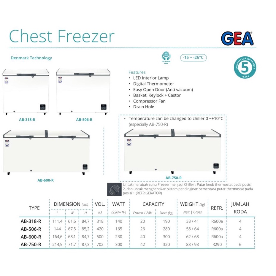 GEA AB 318 R CHEST FREEZER BOX 318 L LEMARI PEMBEKU 318 LITER BY GEA CPY