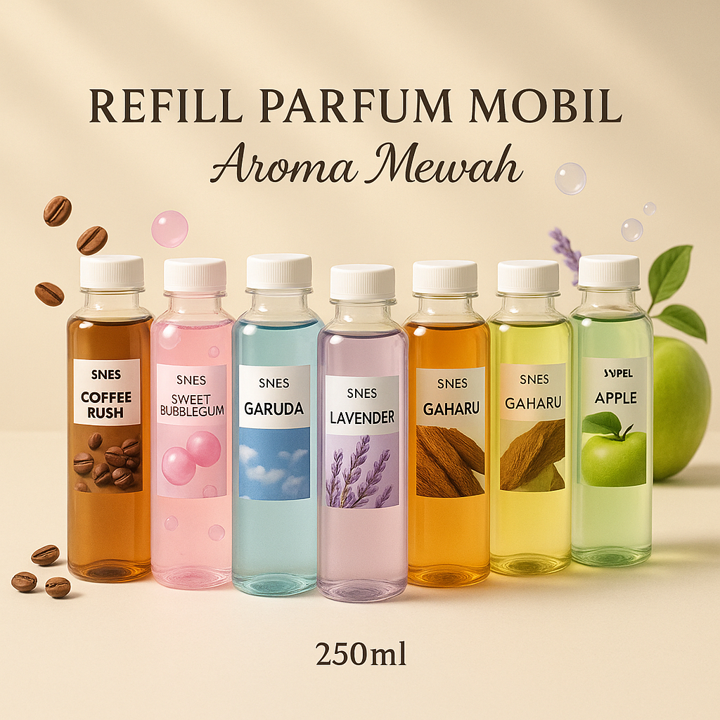 SNES Refill Parfum Mobil Cair 250 ML / Parfum Isi Ulang Parfum Mobil Dan Parfum Pajangan Mobil - Refill Parfum Gantung Botol Apel Dll