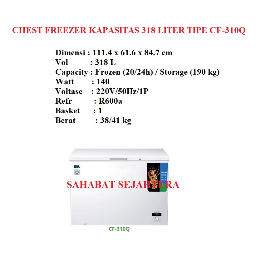 RSA Chest Freezer CF-310Q Freezer Box 318 Liter