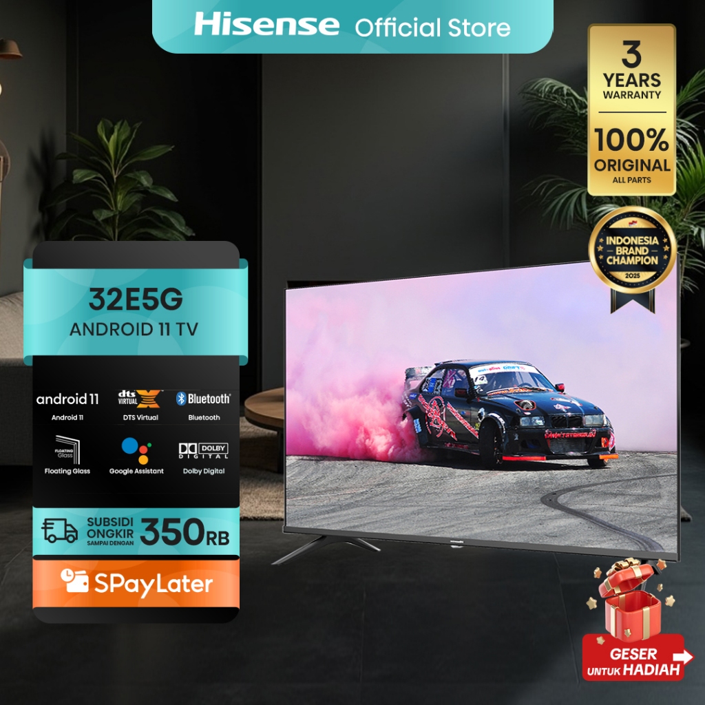 Hisense 32" HD Android 11 Smart TV-Bezelless Design-Dolby Audio- Youtube/Netflix/Prime video-Casting-Google System-Sports&Game mode-Wifi-USB-Clean View-Master Pro (32E5G)