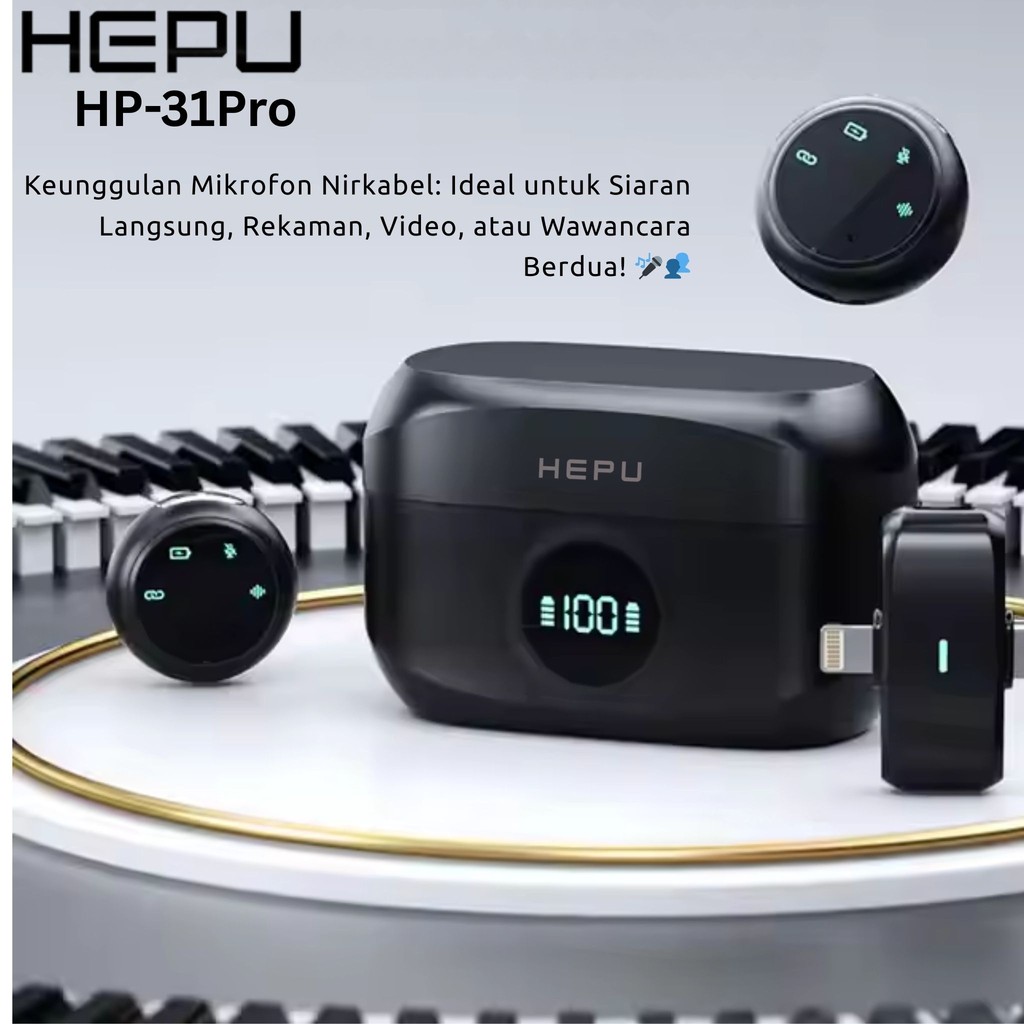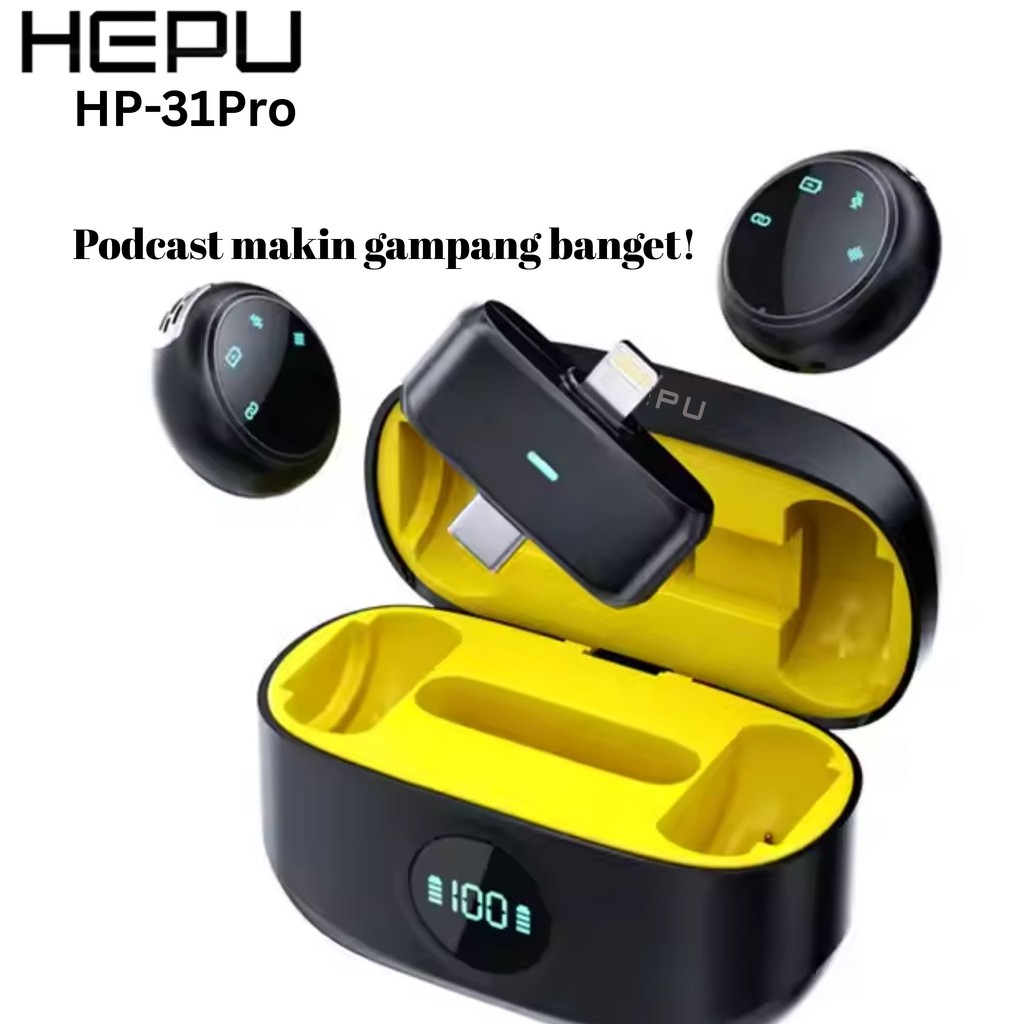Hepu Microphone Wireless 2 In 1 Hp-K31Pro Wireless Clip On Untuk Tiktok Youtube Facebook Live Stream