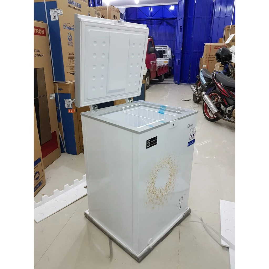 MIDEA CHEST FREEZER HS 129 C HS129C 110 LITER COOLER FREEZER BOX LEMARI PEMBEKU ES HS 129C 100 LITER DESKRIPSI : MIDEA HS 129 C Freezer