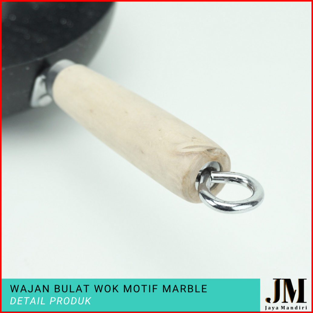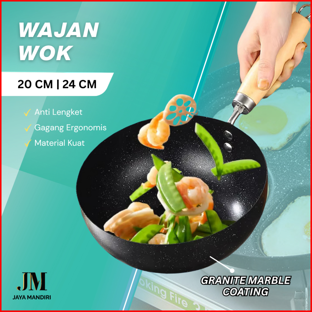 Wajan Wok Granite Anti Lengket 20 Dan 24 Cm Teflon Gagang Kayu Frypan Marble Non Stick Pan Aa217