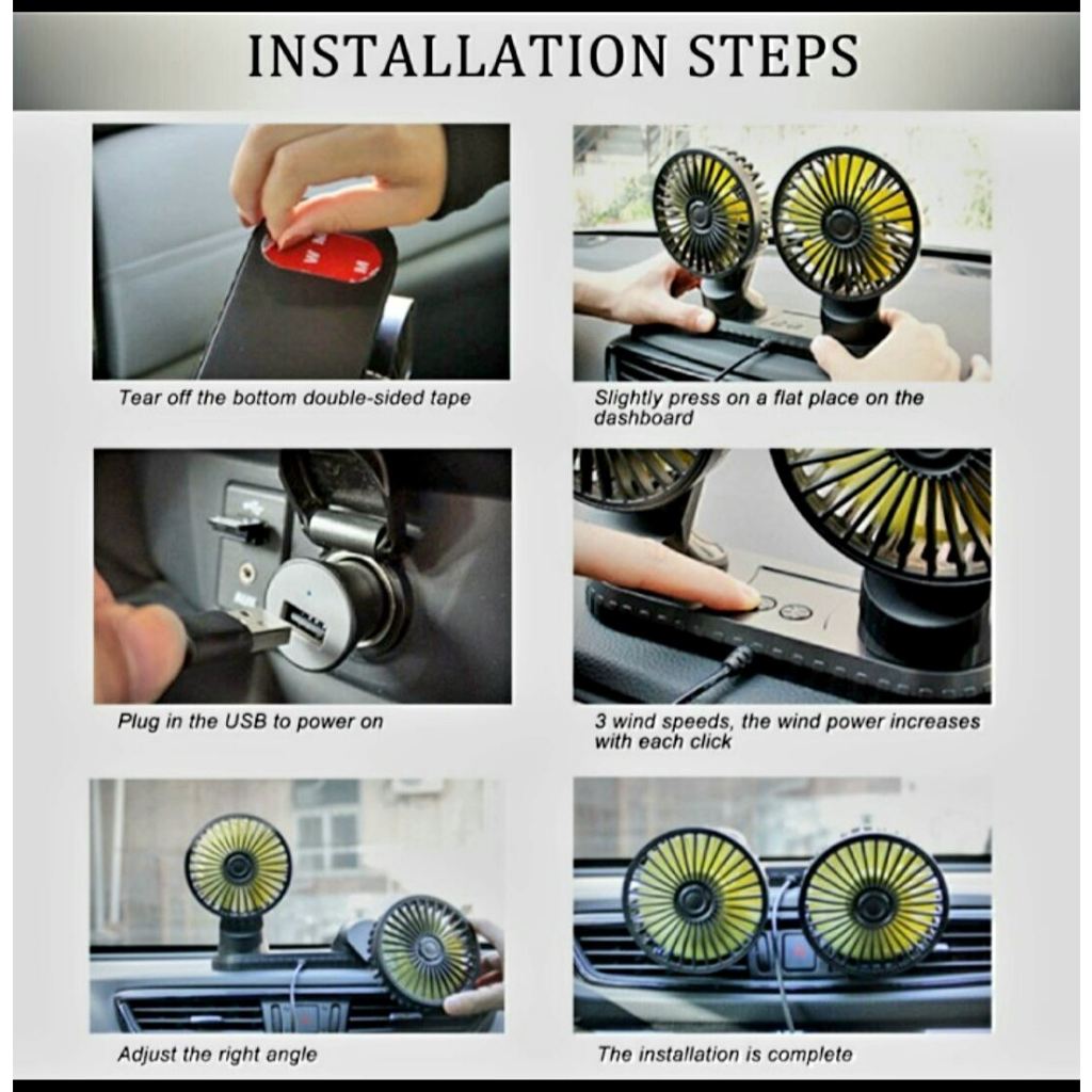 Kipas Angin Mobil Ganda Kepala Kipas Mobil Portabel Kipas Mobil Kepala Ganda USB dengan Kipas Mobil 3 Kecepatan