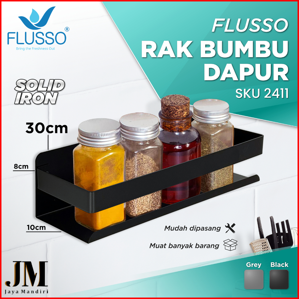 Flusso Rak Bumbu Dapur Serbaguna Tempel Dinding Tanpa Bor Bahan Stainless Tebal 2411 2561