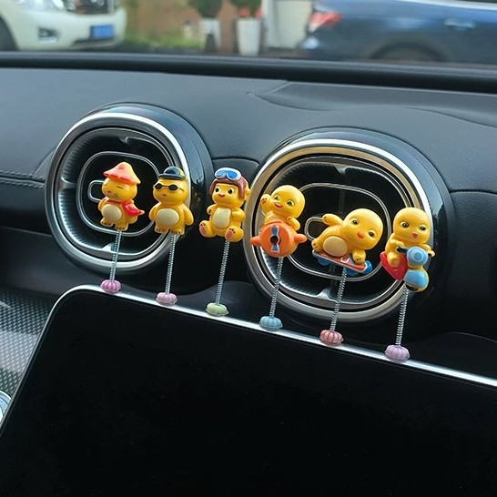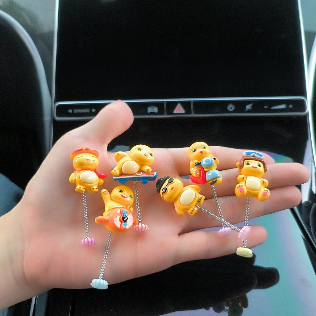 [6PCS]Mini Figure Nailong Dino Kuning Blocks Mainan Car Decoration Navigation Screen Electric Car Cute Decorations