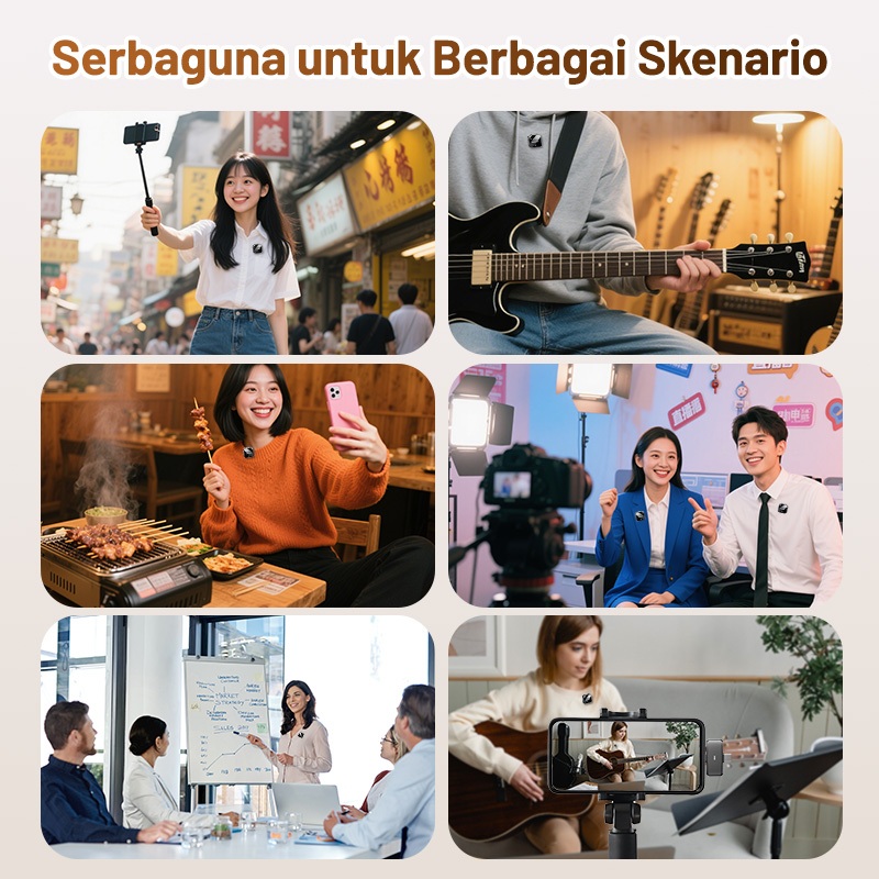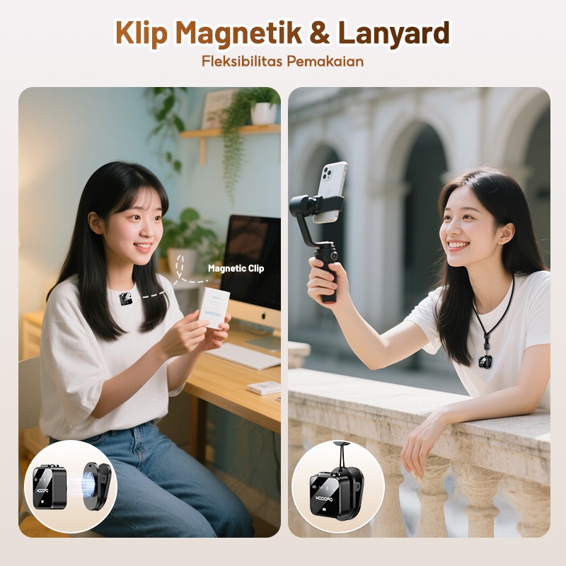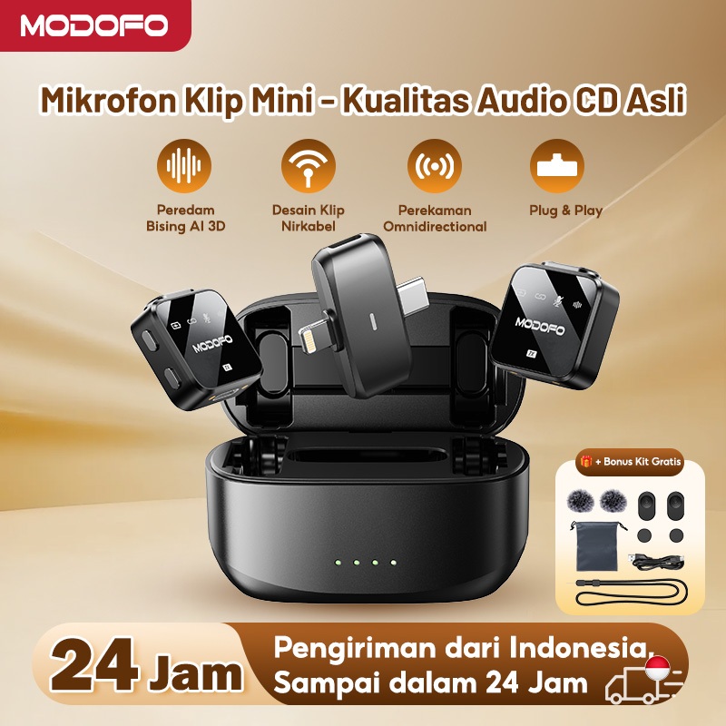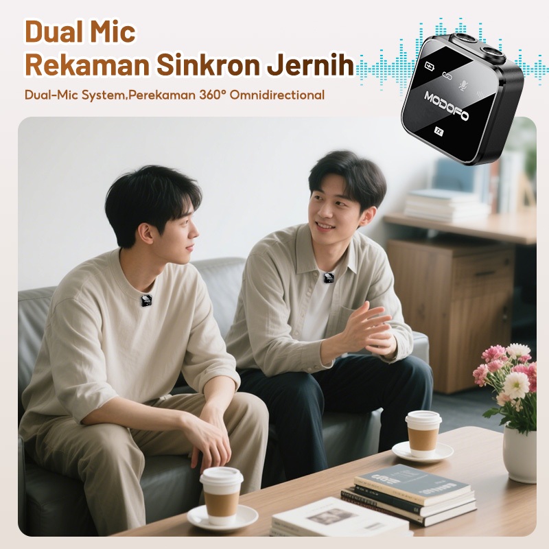 Modofo Mic Wireless Clip On Advance 2 Microphone Konten Kreator Live Streaming,Mikrofon Bluetooth