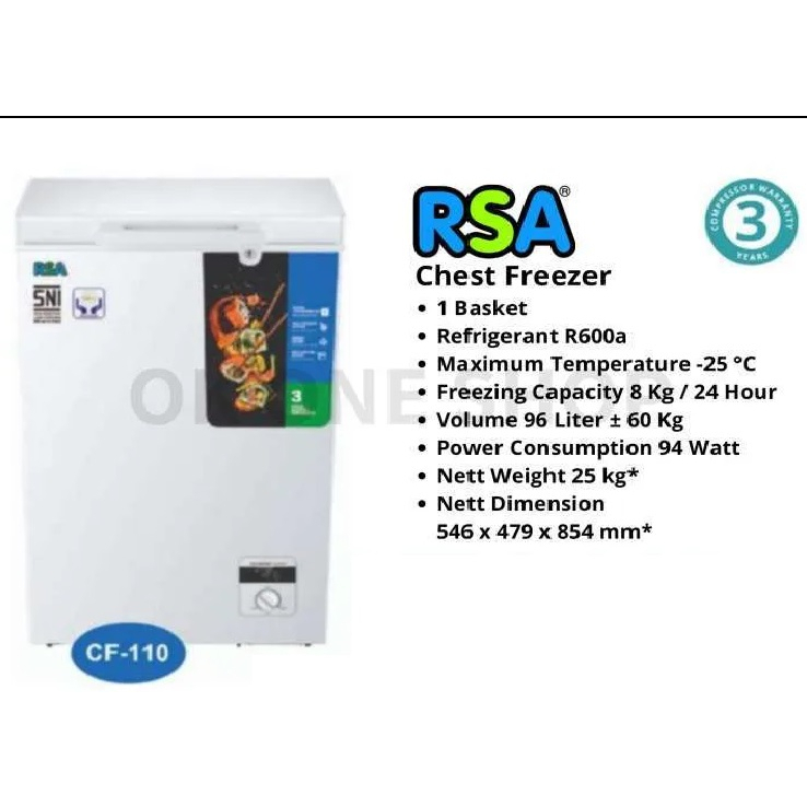 Chest Freezer RSA CF 110 CF110 Sliding XS-110 Pembeku 100 Liter Freezer Box Garansi Resmi CF-110 XS110