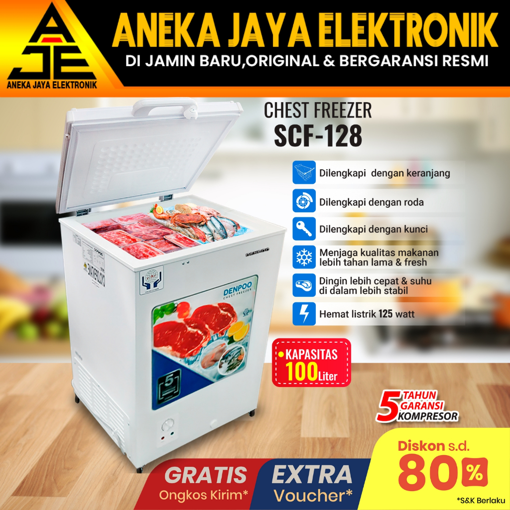 CHEST FREEZER BOX DENPOO KAPASITAS 116 LITER -SCF 128G