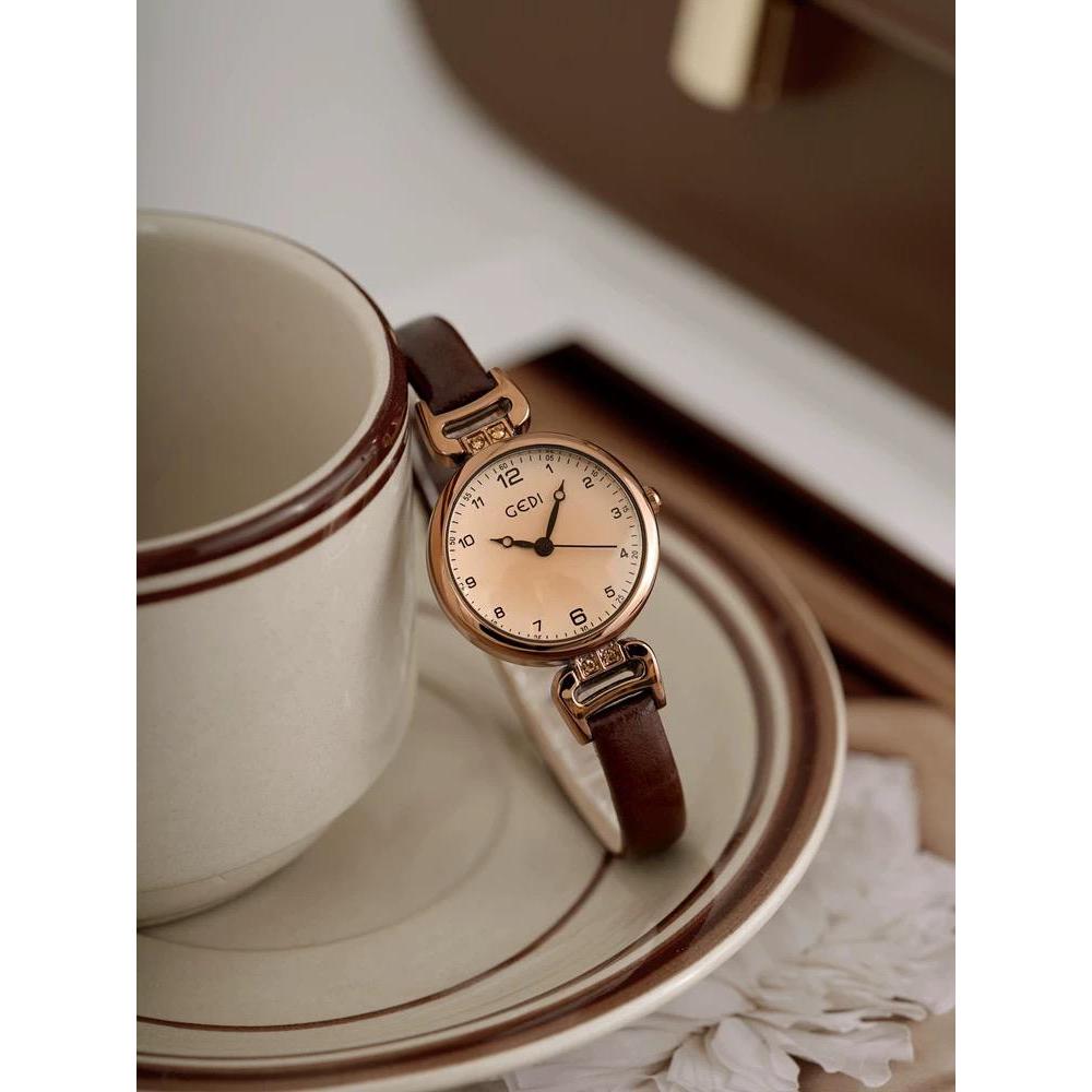 Gedi Jam Tangan Wanita Tali Kulit Asli Jam Analog Vintage Elegant Korea Anti Air 74416