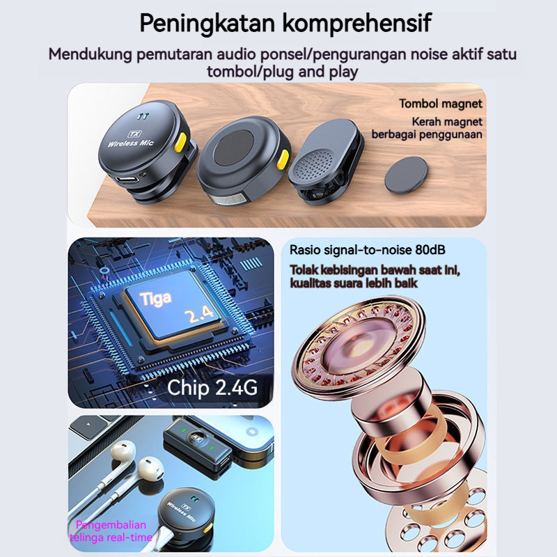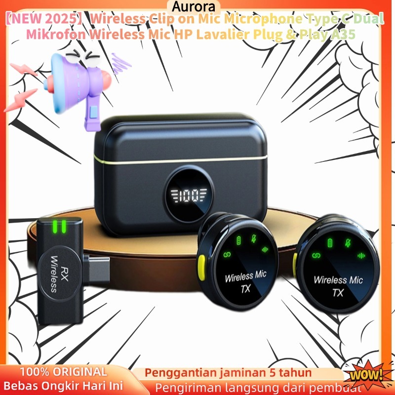 Wireless Clip On Mic Microphone Type C Dual Mikrofon Wireless Mic Hp Lavalier Plug & Play A35