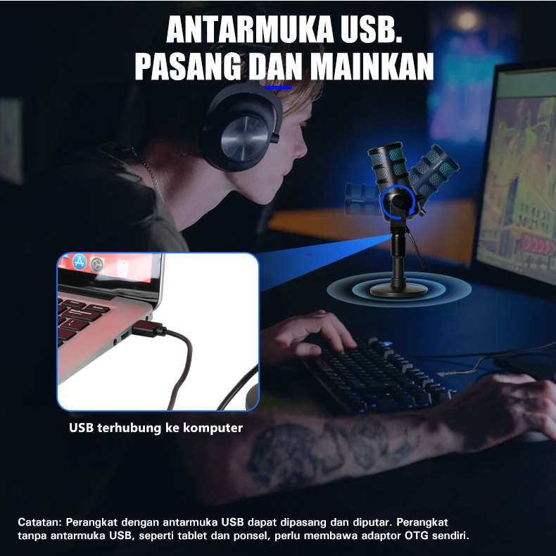 Rayhayes Mikrofon Kondensor Usb Microphone Live Rgb Mic Rekaman Streaming Podcast Pc