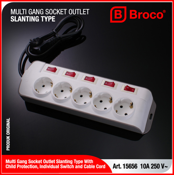 Broco Electrical 15656 Stop Kontak 5 Lubang Miring Cp Indiv. Switch Kabel
