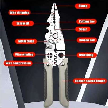 Tang Dekrutasi Kabel Pengupas Kawat Multi Funsi / Alat Tang Pengupas Kabel Listrik HT Hardware