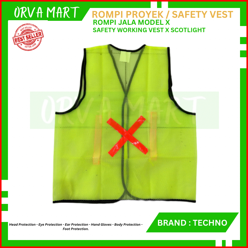 Rompi Safety Jaring Proyek Scoth X Techno Orange Hijau