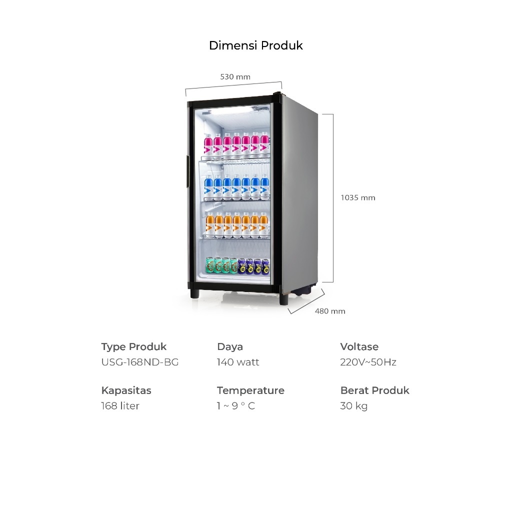 LEMARI PENDINGIN SHOWCASE MASPION USG 168 ND KAPASITAS 168 LITER