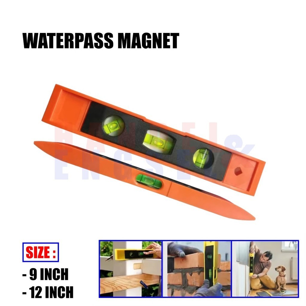Waterpass Magnet 9 INCH 12 INCH Penggaris Pengukur Magnet Waterpass Magnetic Alat Ukur Kecil dan Besar Vertical, Horizontal, Diagonal