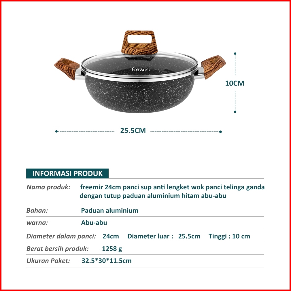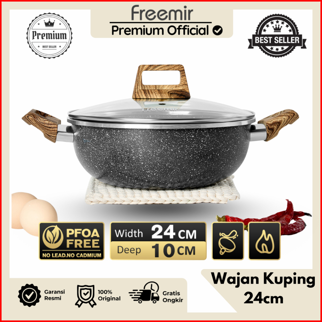 Premium Freemir Wajan Panci 24cm Tinggi 7.5cm 10cm Anti Lengket Wajan Panci Hitam Serbaguna