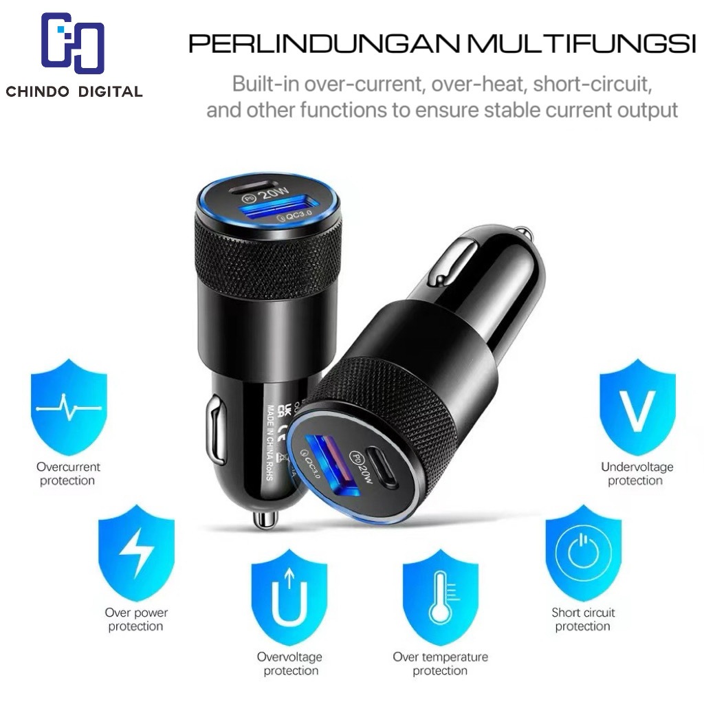 Fullset Car Charger 2 Ports QC3.0 with 3in1 Cable Fast Charging Colokan Charger Mobil