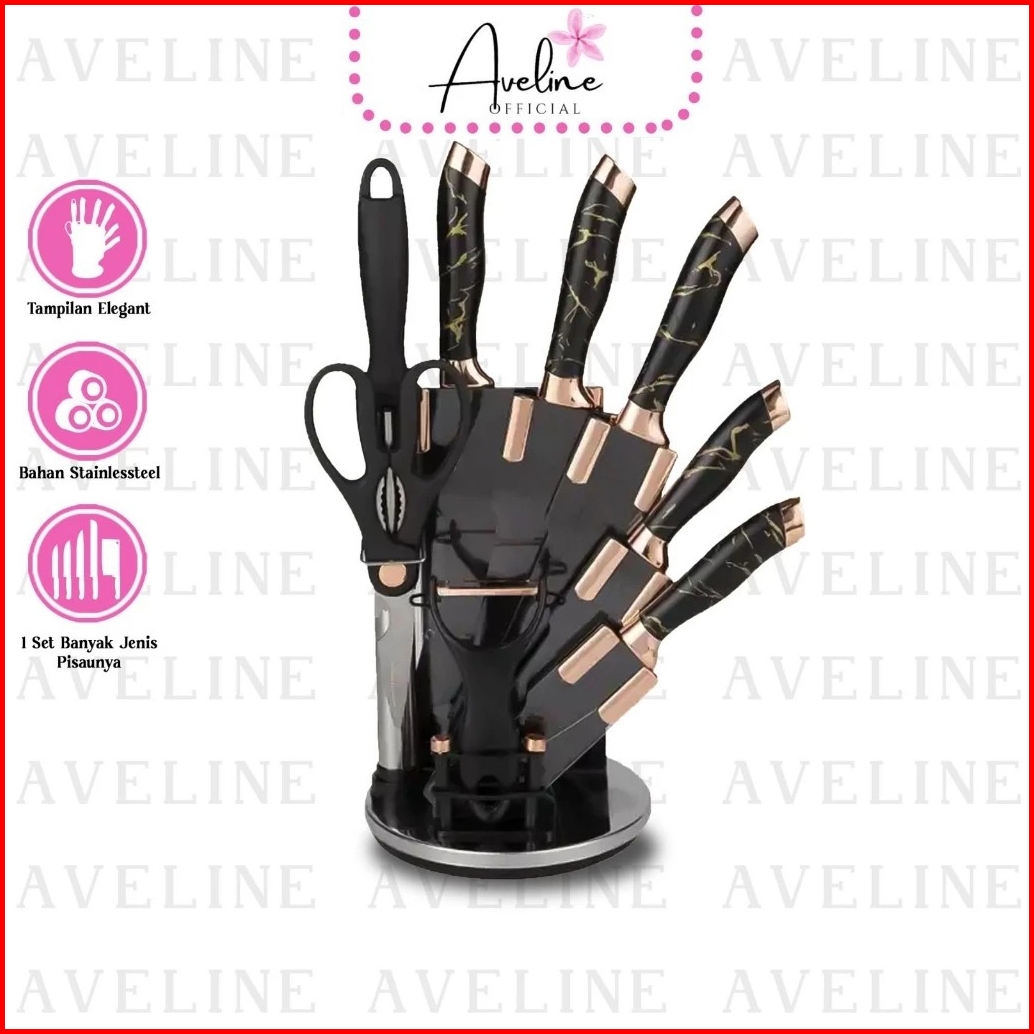 Aveline Pisau Set Marble Multifungsi Isi 9pcs 7pcs Stainless Steel Marble Pisau Stainless Steel Multifungsi Koki Alat Da