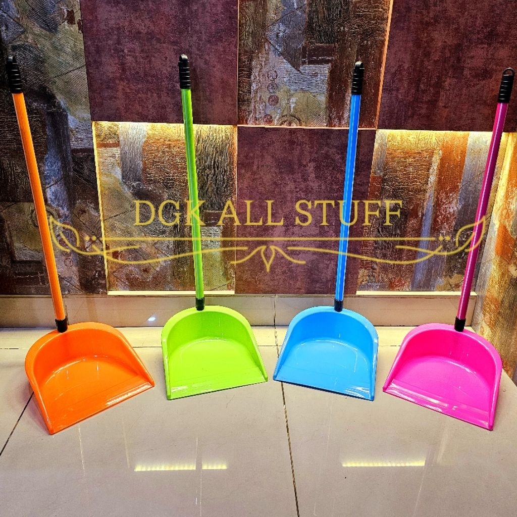 Pengki Serok Serokan Dustpan Sekop Skop Sampah Gagang Panjang Plastik Besar Premium Warna Warni Pink Hijau Orange Biru Estetik Aesthetic