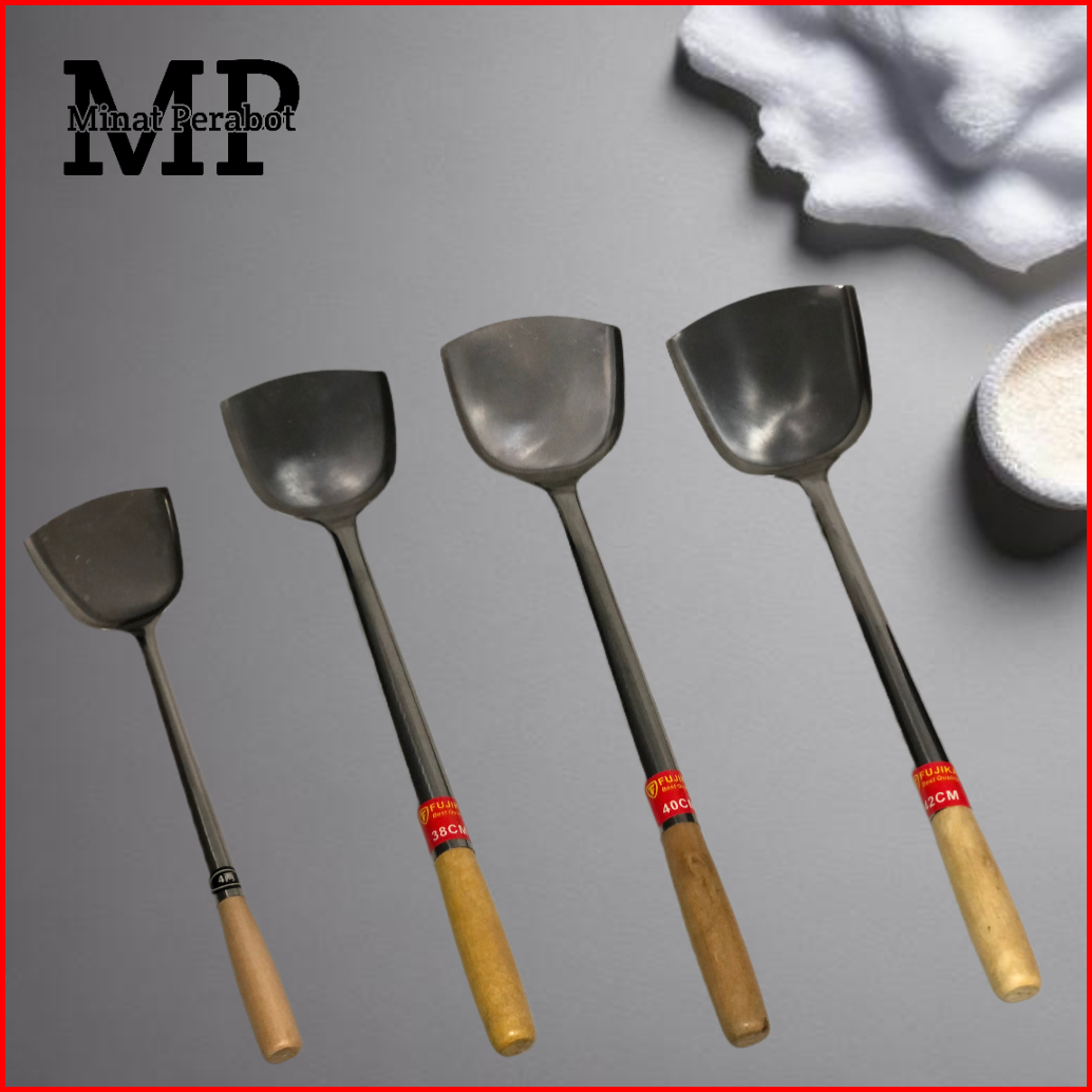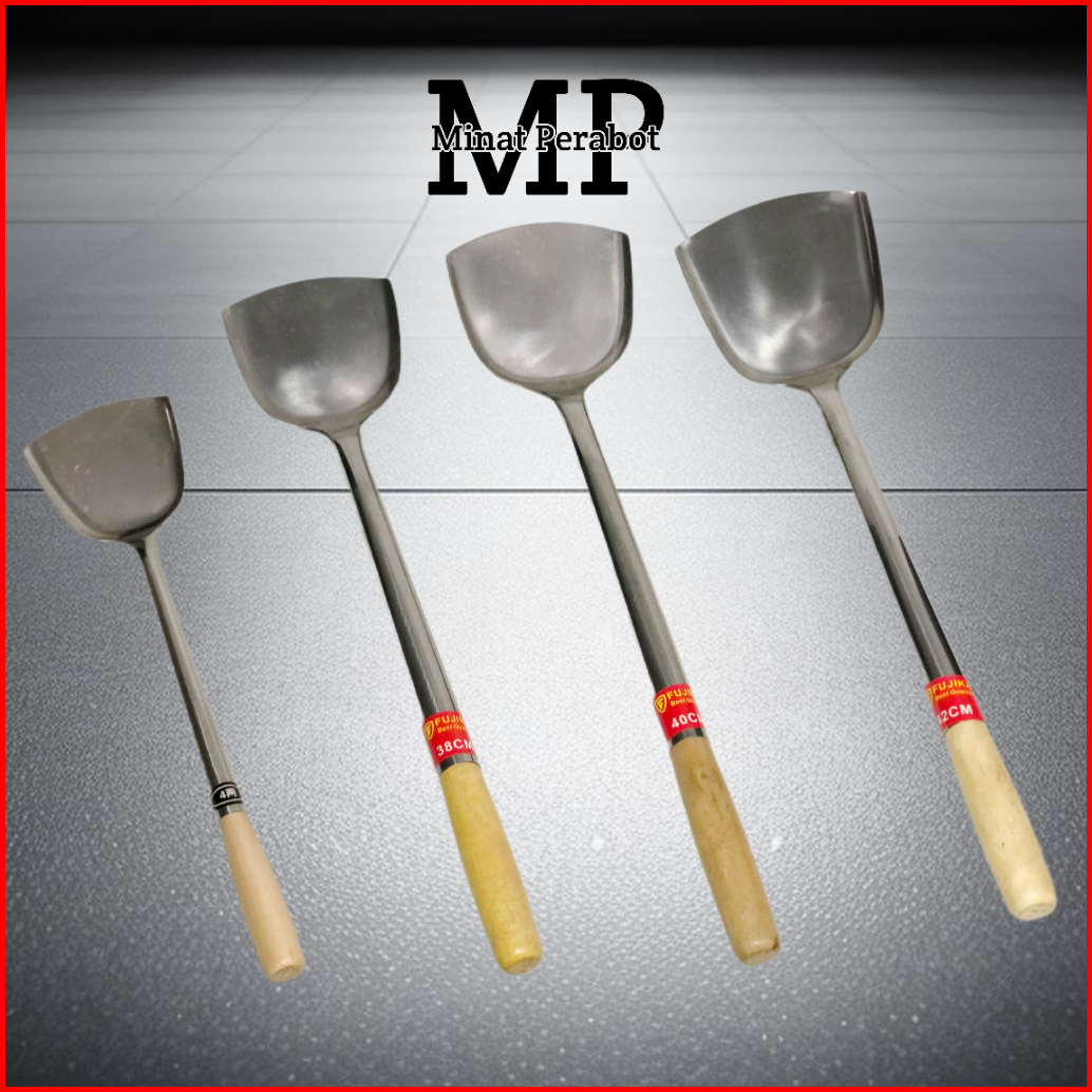 Spatula Sodet Stainless Gagang Kayu Jumbo Panjang Sodet Spatula Besar Anti Panas Dan Lengket Masak
