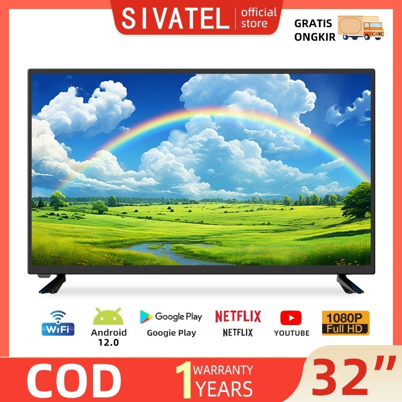 Sivatel TV Smart Android 32 inch TV LED/LCD Digital 32/22/24/25/27inch FHD 2K Android 12.0 Televisi Murah
