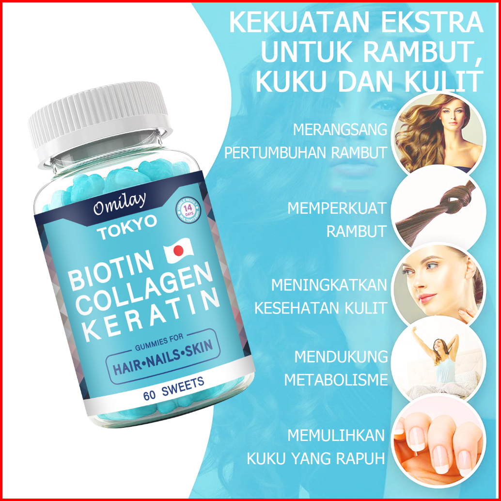 Omilay Suplemen Biotin With Collagen For Beauty Hair Nails Skin Biotin Penumbuh Rambut Vitamin Gummy