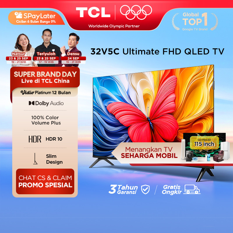 TCL Ultimate QLED FHD TV 32 inch V5C - HDR 10 - Dolby Audio - Google Play/Netflix/Youtube/Disney+Hotstar - Smart Android 24 LED Digital Promo Murah G9 (Model: 32V5C) | 32G9 40G9