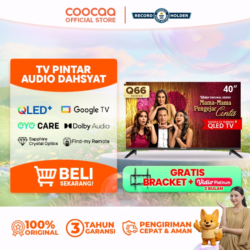 TERBARU COOCAA TV 40 inch Q66 - 2K QLED - Google TV - Sapphire Crystal Optics - HDR10/HLG - Eye Care - Dolby Audio - Find My Remote - Voice Control - (COOCAA 40Q66)