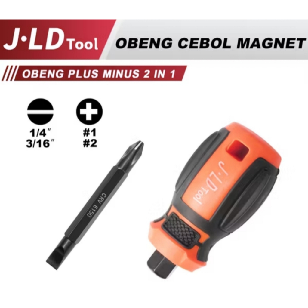 JLD Obeng Bolak Balik Pendek Magnet - Obeng cebol Plus minus